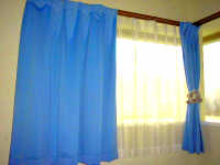 窓などの間仕切りにレールによって吊り下げる布類。